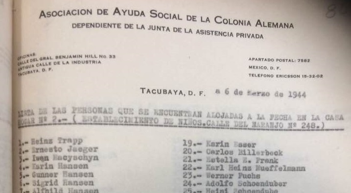 Se habilitaron tres casas una en la Calle de Benjamin Hill No. 35, en Tacubaya, para los alemanes adultos; otra, en Coyoacán, para ancianos, y otra en la colonia Doctores, para menores de edad.