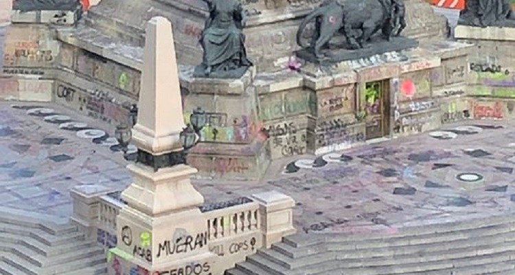 También, en la estación Insurgentes del Metrobús y… ¡en la Columna de la Independencia! A ella, sionista globalista, le tienen sin cuidado los valores patrios.
