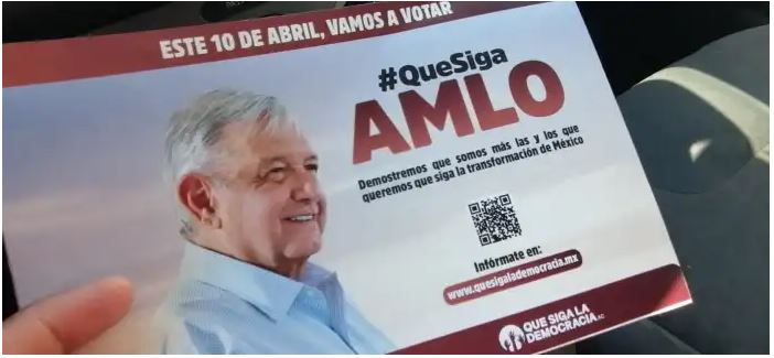 La técnica propagandística es la misma que utilizaron los promotores del presidente Andrés Manuel López Obrador antes de la consulta de revocación de mandato del pasado 10 de abril. La campaña referida tuvo como lema el siguiente: «Que siga AMLO».