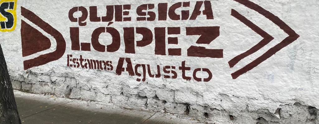 Aparecen bardas y calcomanías con la leyenda «Que siga López. Estamos Agusto (sic)»