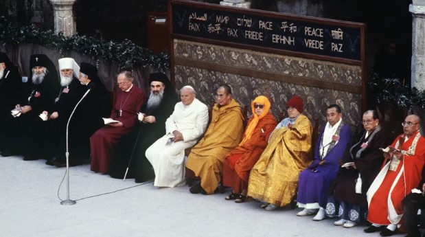 La masonería y el modernismo afirman la equiparación de todas las religiones a efectos de la Salvación. De ahí la obsesión del Vaticano II y del clero actual por el ecumenismo. De ahí la famosa reunión en Asís (Italia) de San Juan Pablo II con líderes religiosos, representantes de otras tantas religiones, algunas de ellas panteístas, para rezar por la Paz. Reunión que antes del Vaticano II se hubiera considerado apostasía y en contradicción con la actividad de los misioneros.