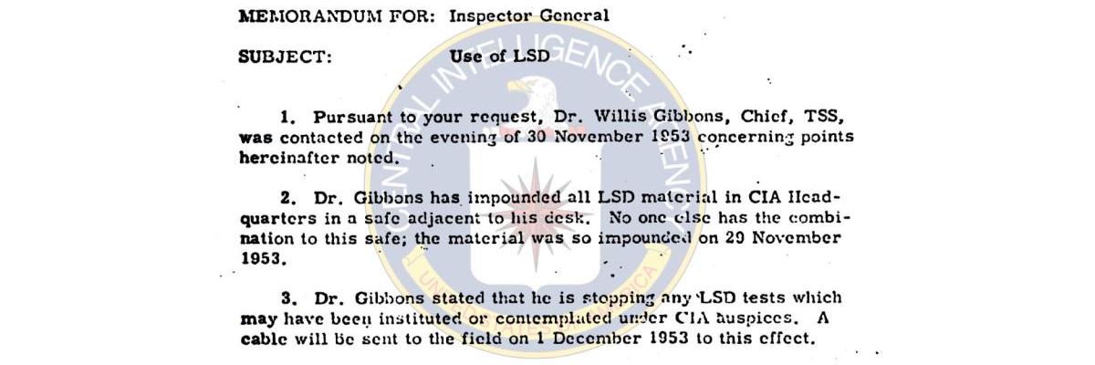 - Un informe de 1963, firmado por el entonces inspector general de la CIA «que llevó a los líderes de la CIA a reexaminar el uso de estadounidenses involuntarios en su programa encubierto de prueba de drogas».