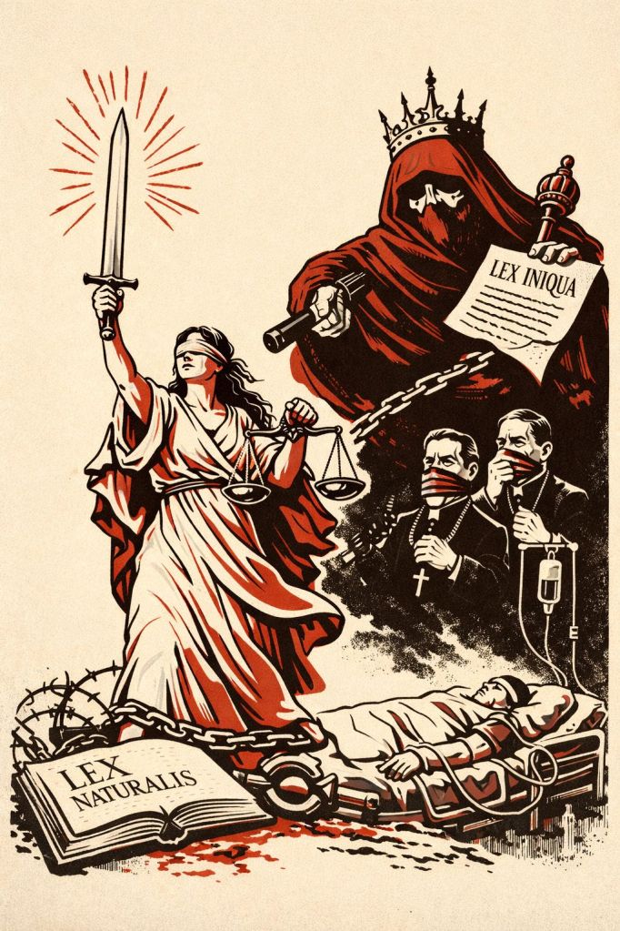 De ese giro se sigue una consecuencia ineludible: la sustitución de la autoridad por la fuerza. La auctoritas —saber moral socialmente reconocido— se evapora cuando la ley se aparta del orden natural; y donde falta auctoritas, solo queda potestas hipertrofiada. Por eso el blindaje penal es clave: el poder castiga la disuasión porque no puede persuadir por justicia. El tipo penal elástico no nace del cuidado del débil; nace del temor del sistema a la evidencia del bien. Y aquí conviene decirlo con exactitud filosófico-jurídica: cuando la ley humana se aparta de la razón natural, no es solo una ley mala; pierde la especie de ley. Deja de ser ordenación de la razón al bien común y queda como mandato de voluntad: corruptio legis. Pero en estos asuntos —vida inocente, muerte provocada— esa corrupción no es periférica; es esencial, porque recae sobre el bien primero sin el cual ningún ordenamiento puede llamarse justo. Por eso, en sentido estricto, no se trata únicamente de injusticia: se trata de violencia con forma legal.