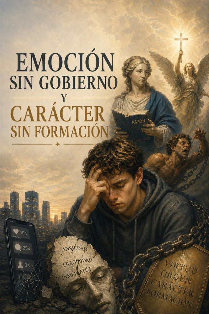 La crisis contemporánea no es simplemente que los jóvenes sientan demasiado. Es que no han sido formados para gobernar lo que sienten. No han sido entrenados en la paciencia, la fortaleza, la templanza, el silencio, la espera, el sacrificio, la obediencia, la perseverancia. Han sido invitados a expresarse antes de aprender a dominarse. Han recibido vocabulario emocional antes que educación moral. Han aprendido a nombrar heridas antes que a ofrecerlas, ordenarlas y superarlas.